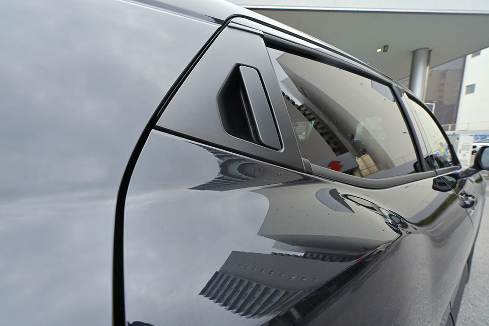 フロントはシャープで引き締まった印象。サイドはロングホイールベースを活かした水平基調のラインが続き、視覚的にも伸びやかです。